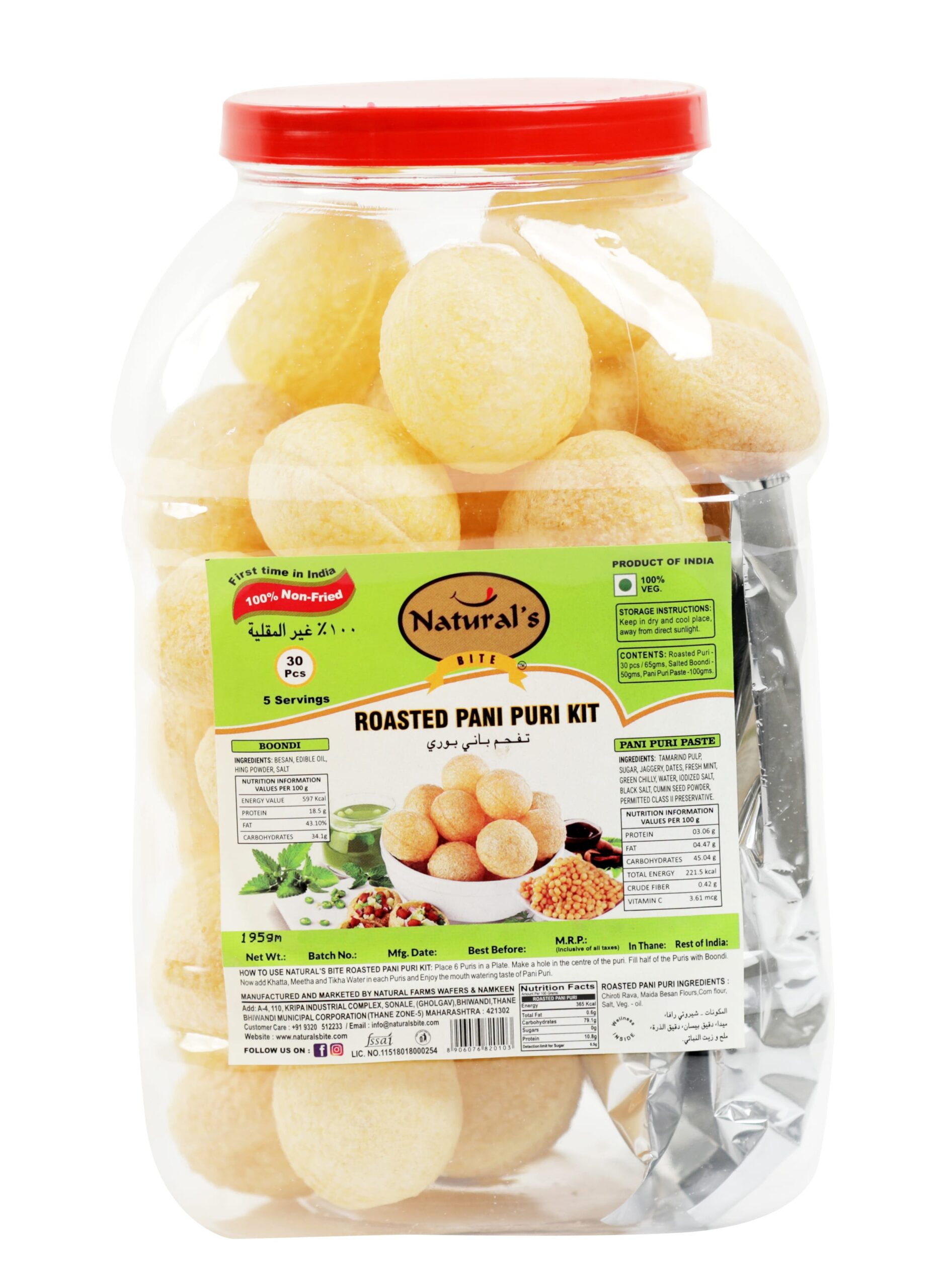 Roasted Pani Puri Ingrediants : Chiroti Rava,Maida, Besan Flours,Corn Flour,Salt,Veg-Oil